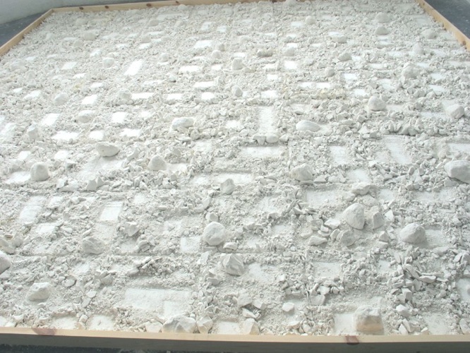 4000 x 4000mms. Lump chalk, powdered chalk and timber