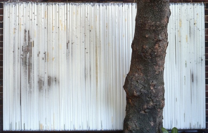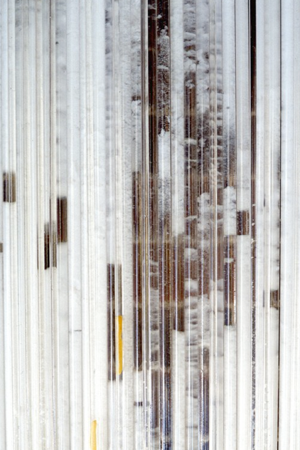 This installation was produced as a response to a poem and site specific aspects of the Chelsea Physic Garden. The installation consisted of numerous scientific clear glass tubes 8mm x 1500mm placed vertically to form a continuous sheet. The tubes were filled with coconut oil (white), and sealed.