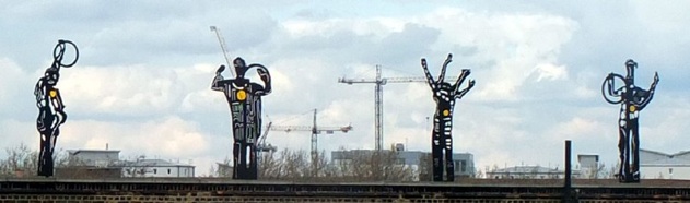 Eight figures sited on the roof of APT warehouse in Deptford SELondon. Produced with Redstart Arts, a group working creatively with adults with learning disabilities.
